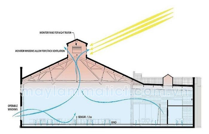 Làm mát nhà xưởng nhờ hệ thống thông gió tự nhiên trên mái nhà