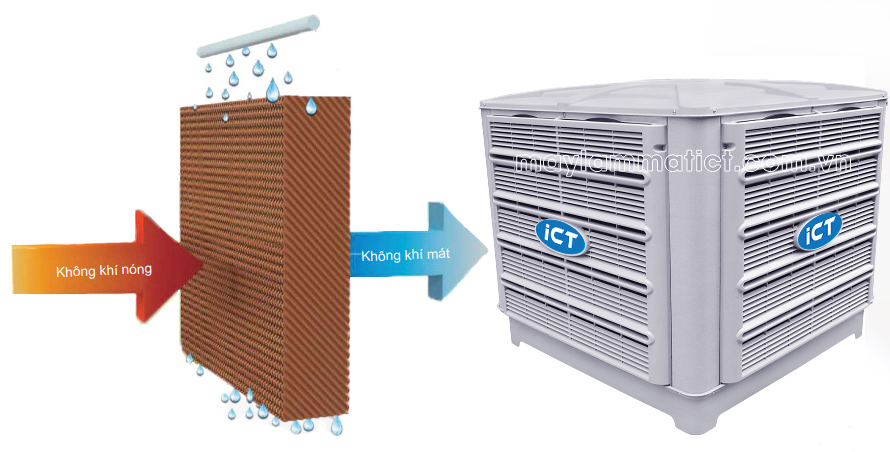 Nhờ nguyên lý bay hơi nước và cân bằng nhiệt, hệ thống này giúp loại bỏ không khí khô nóng, độc hại, thay vào đó là luồng khí tươi tự nhiên, độ ẩm phù hợp vào môi trường làm việc.