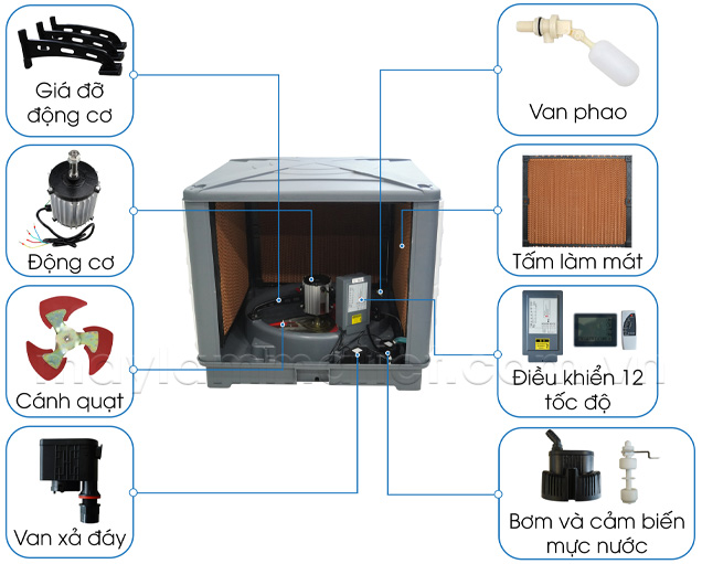 Hình ảnh mô tả các bộ phận cấu thành Máy làm mát iCT-18