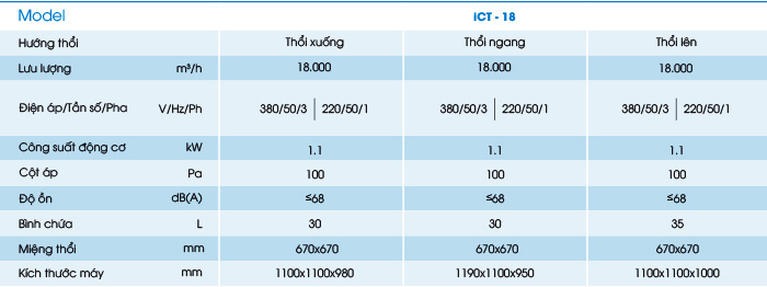 Máy làm mát công nghiệp iCT-18 có những đặc điểm nổi bật sau: