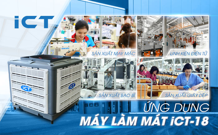 Máy làm mát iCT-18 được ứng dụng rộng rãi trong các môi trường có không gian lớn, cần làm mát diện rộng: