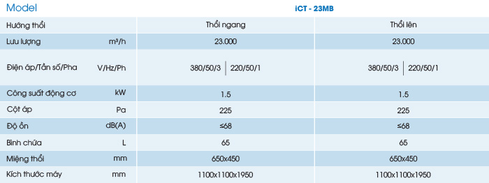Thông số kỹ thuật Máy làm mát di động iCT - 23MB