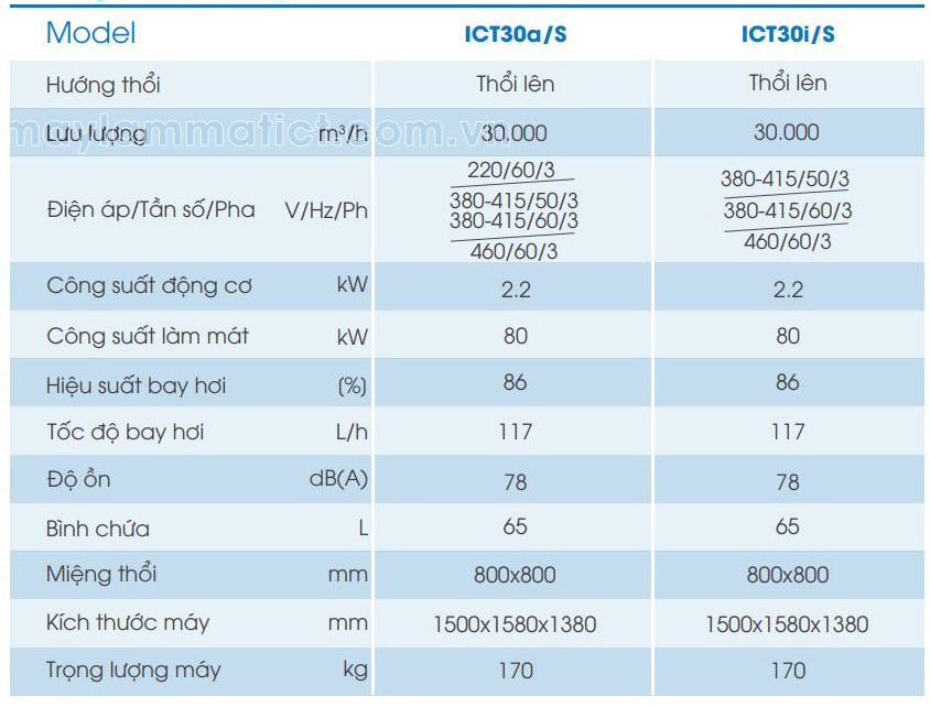 Thông số kỹ thuật Máy làm mát ICT-30I/S