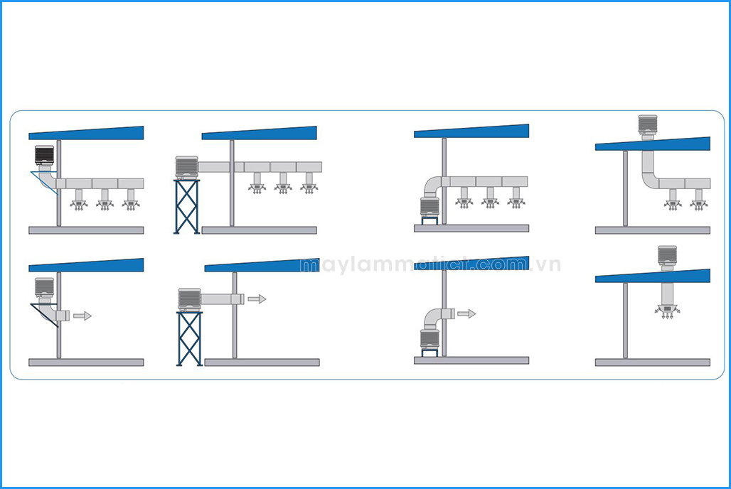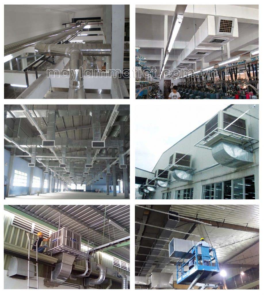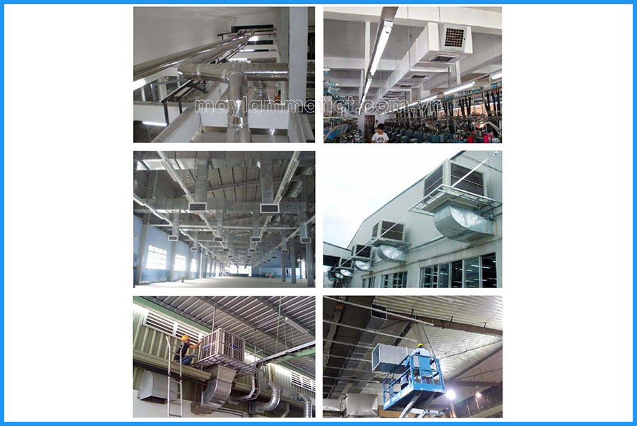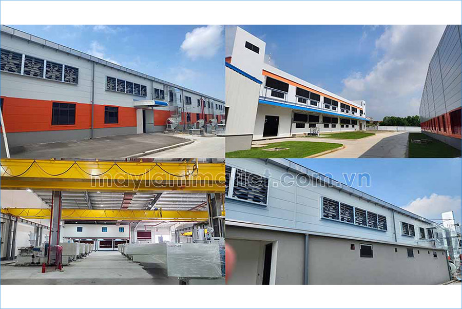Nhà xưởng có nhiệt độ cao: nhà máy ép phun, da giày, hệ thống máy làm mát xưởng may, in, cao su, xưởng dập kim loại, nhà máy thủy tinh, điện tử, chế biến thực phẩm...